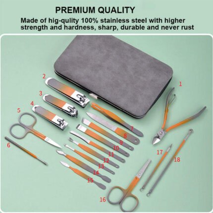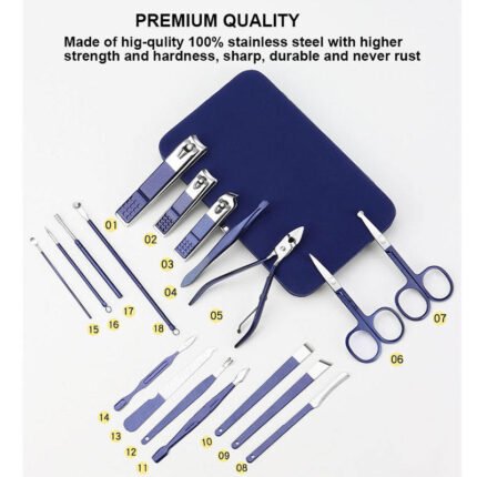 This piece stainless steel kit is designed for a complete and professional nail care experience at home or in