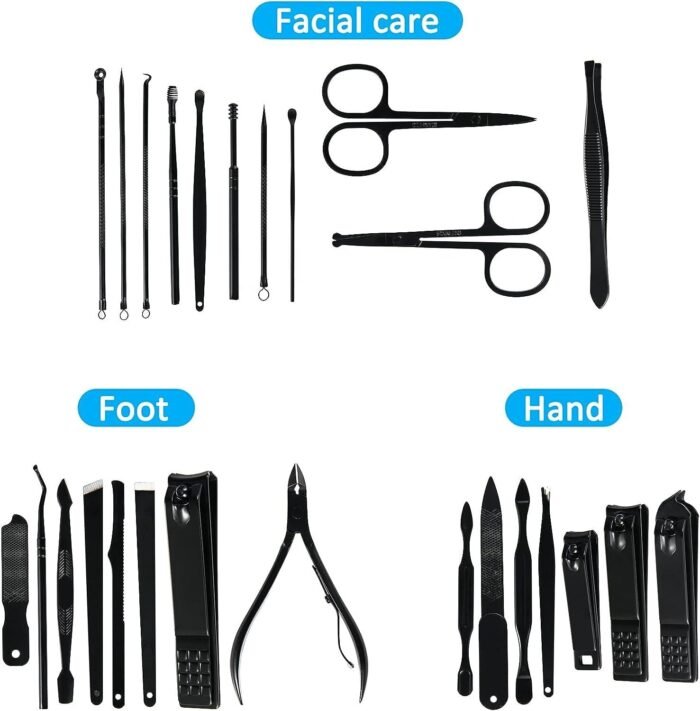 This piece stainless steel kit is designed for a complete and professional nail care experience at home or in a salon. It includes everything you need for beautiful hands and feet, from trimming and shaping to grooming and styling.